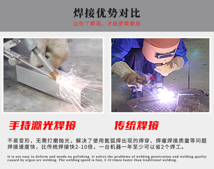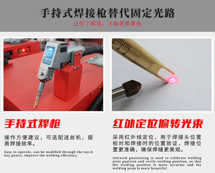 手持激光焊具有更低的生产服从率,但对于从事小规模加工或非大范围焊接的生产车间,手动激光焊接是最佳选择,无需设置设备来部署焊接台,占用空间小,重要重点是小作坊的焊接产品多样化,产品形状灵活,手工激光焊接完全可以满足这种需求。