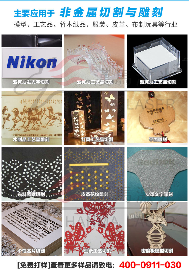 商标、布料、皮革、木材、竹筒、纸张、亚克力、有机玻璃、橡胶、塑料、毛料、瓷砖、水晶、玉石以及其他非金属材料