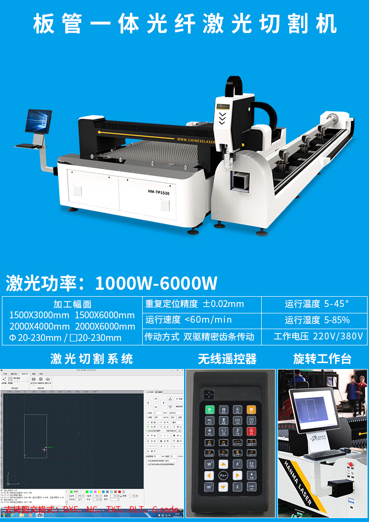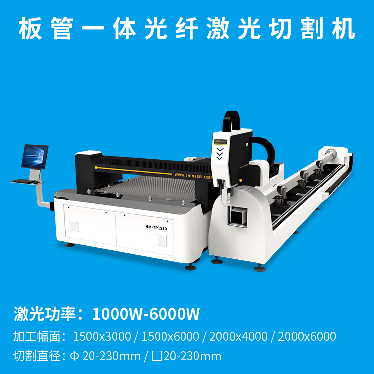 管板激光切割机HM-TP1530 专业用于切管,满足用户切割圆管、方管等管材多样化的需求,单独的切管系统,独立分割,互不影响,下料更加方便,精度更高。