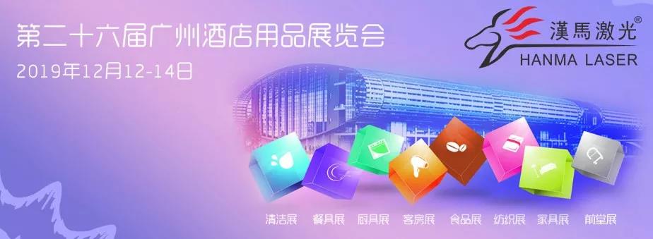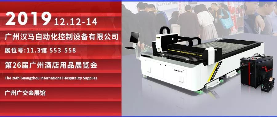 2019 第26届广州国际酒店用品展览会,将于2019年12月12-14日在广州中国进出口商品交易会琶洲展馆盛大举行,广州汉马自动化控制设备有限公司(以下简称汉马激光)有幸受邀作为展商出席本次展会,届时我们将展示最优质的产品,并以最专业的服务、最饱满的热情,在广交会展馆11.3馆553-558设展,恭候您的莅临!